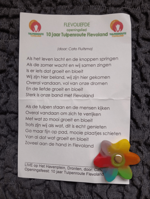 Cato Fluitsma maakte het speciale Tulpenlied en gaf het ten gehore, zichzelf begeleidend op de accordion. Ook werd het Junk-Art kunstwerk "De Tulp"onthuld op het Havenplein.